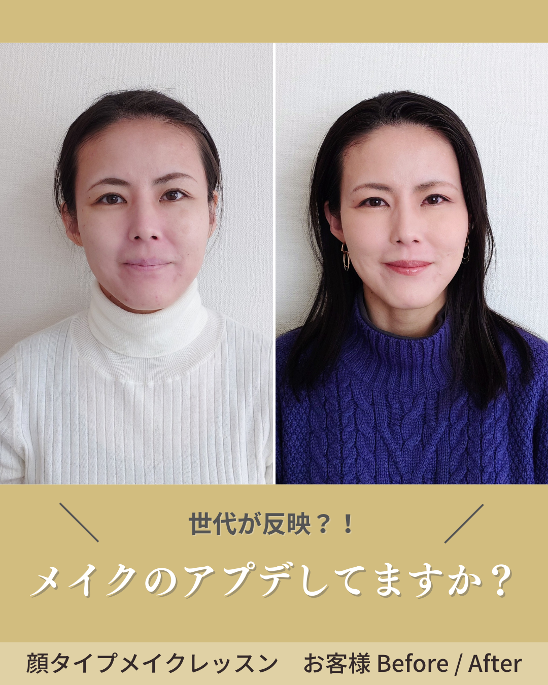 左側はおよそ半年前のご来店時のご自身のメイク